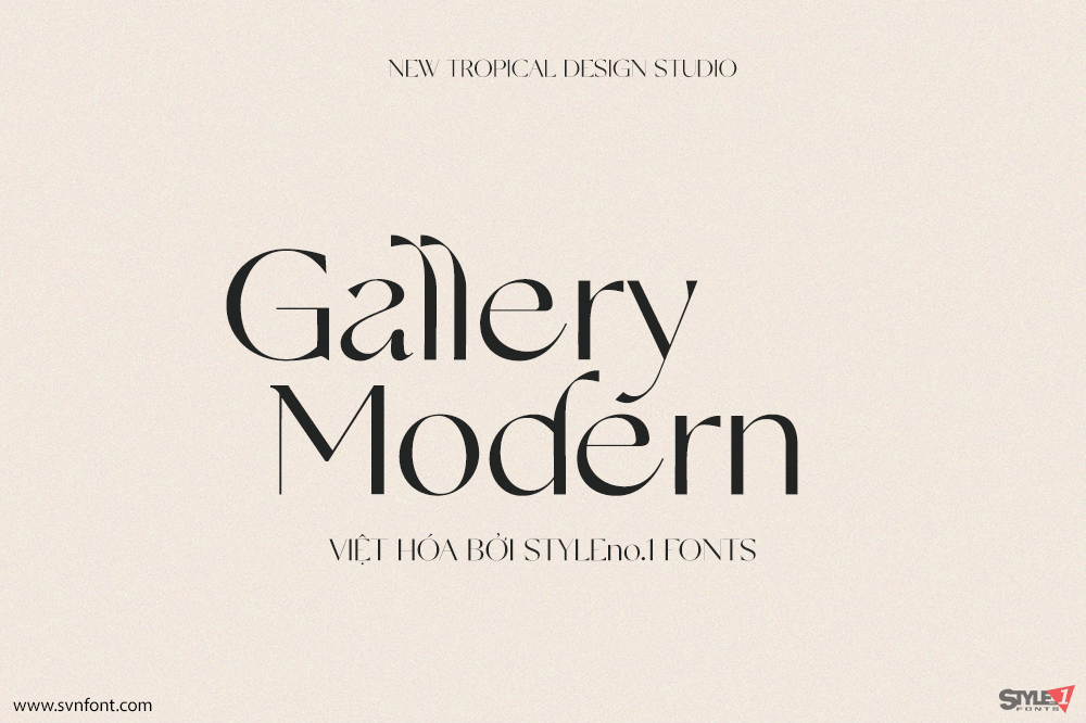 Gallery Modern là một font chữ hiện đại, vừa dễ ghi nhớ vừa mang phong cách thời trang. Những đường cong mượt mà của chữ “a” và các nét thân cong của những chữ có phần vươn cao tạo nên một font chữ độc đáo. Đây là sự pha trộn giữa serif cổ điển và sans serif mang hơi hướng tương lai. Gallery đi kèm đầy đủ chữ hoa, chữ thường, chữ số và dấu câu, đồng thời hỗ trợ các ngôn ngữ châu Âu. Font chữ này rất phù hợp cho branding thời trang hoặc thiết kế biên tập, thể hiện hài hòa cả nét nam tính lẫn nữ tính.